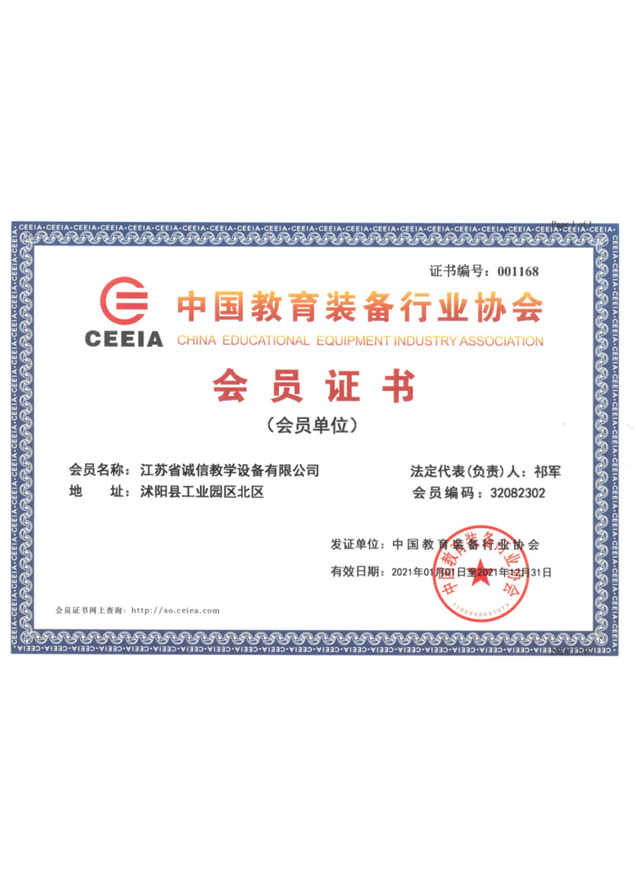 中國教育裝備行業(yè)協(xié)會(huì)會(huì)員證書