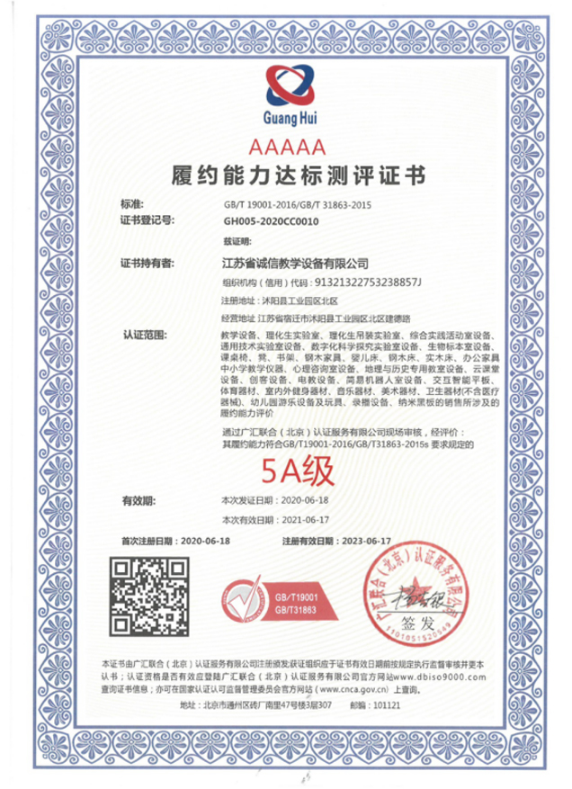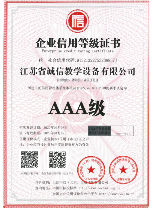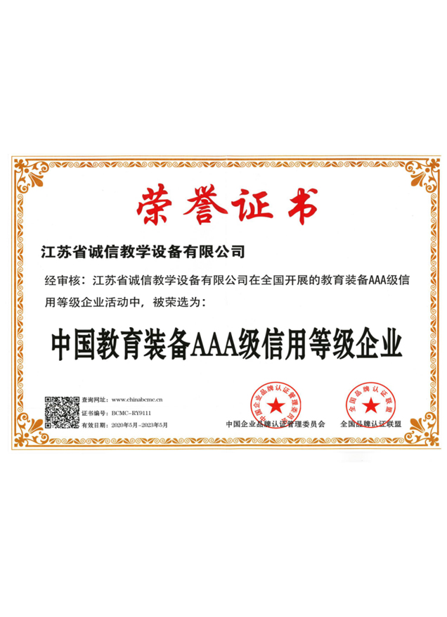 中國教育裝備AAA級(jí)信用等級(jí)企業(yè)