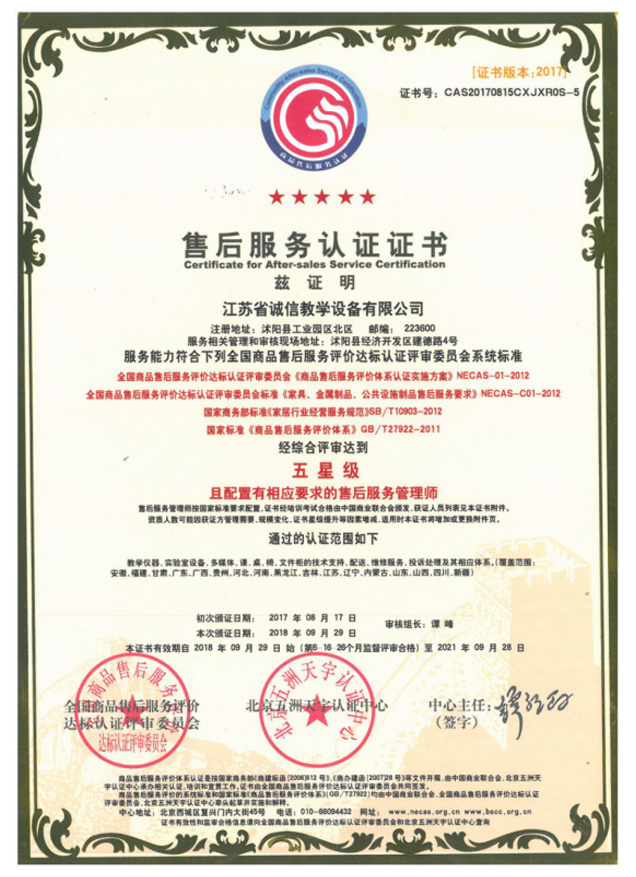 售后服務(wù)認(rèn)證證書五星