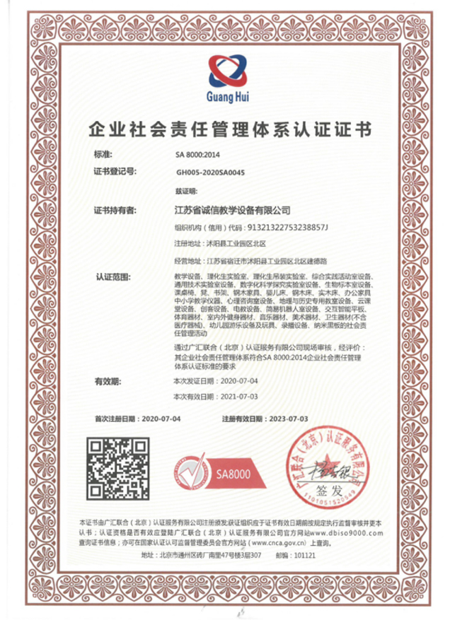 企業(yè)社會(huì)責(zé)任管理體系認(rèn)證證書