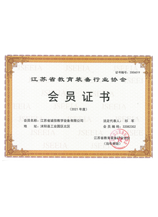 江蘇省教育裝備行業(yè)協(xié)會(huì)會(huì)員證書