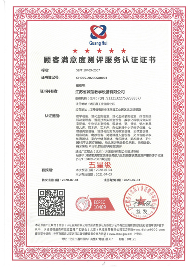 顧客滿意度測(cè)評(píng)服務(wù)認(rèn)證證書