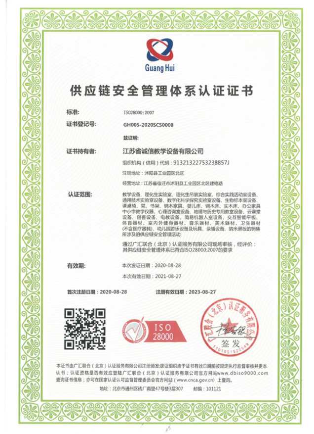 供應(yīng)鏈安全管理體系認(rèn)證證書