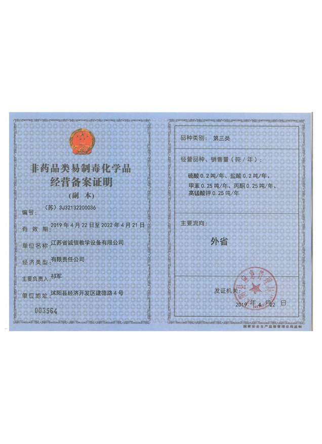 非藥品類易制毒化學(xué)品經(jīng)營(yíng)備案證明