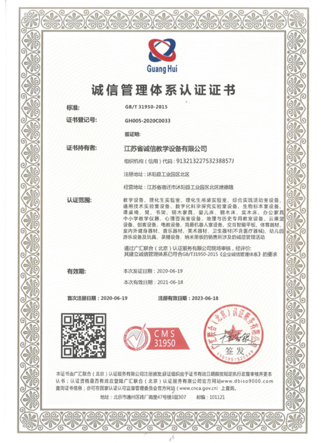 誠信管理體系認(rèn)證證書
