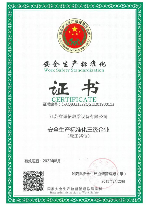 安全生產(chǎn)標(biāo)準(zhǔn)化三級(jí)企業(yè)證書